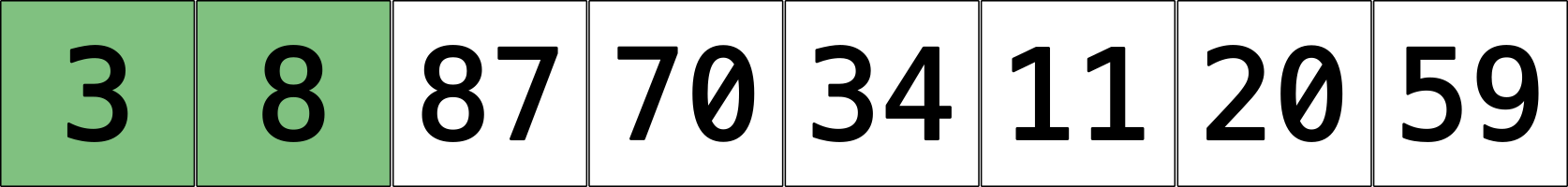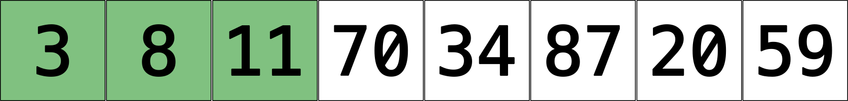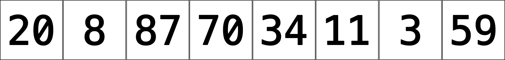 int[] v = {20, 8, 87, 70, 34, 11, 3, 59};